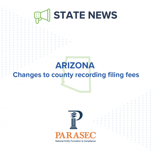 Effective July 1, (pursuant to Senate Bill 1043) the filing fee for documents filed with the county recorder has been changed to a flat fee of $30 per recording document (except plats and surveys) in the state of Arizona. The…